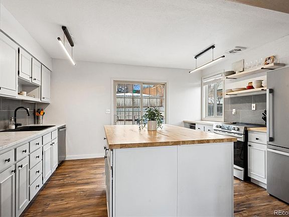 Completely updated home on a private cul-de-sac lot. The brand new kitchen features a spacious island, new appliances, counters, sink, and freshly painted cabinets. New flooring: LVP upstairs and carpet downstairs. Updated lighting, freshly painted upstairs and exterior, new roof. The open, bright layout includes a garden-level lower level with a large family room and cozy wood-burning stove, two bedrooms, a full bath, and laundry. Plenty of storage with a storage shed and additional space in the 2-car garage. Conveniently located just 10 minutes to I-70 and Red Rocks, with nearby trails, parks, and a playground. Quiet neighborhood.