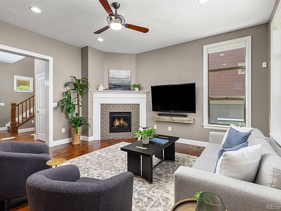 Welcome to your dream home nestled in the heart of Central Park's lively Conservatory Green neighborhood! Step into this meticulously maintained 3-bedroom, 2.5-bath home and be greeted by a haven of modern comfort and convenience. You’ll be captivated by the seamless flow of the open floor plan, accentuated by rich hardwood floors and lofty 10-foot ceilings. The spacious living room is adorned with a sleek fireplace and provides the perfect setting for warmth and relaxation. For the culinary enthusiast, the gourmet kitchen is a true masterpiece, featuring an abundance of cabinetry, granite counters, large island, and stainless steel appliances, including double wall ovens and gas cooktop with hood. With an adjoining dining area and access to the backyard patio just steps away, al fresco dining becomes a delightful everyday indulgence! A sun-drenched office, mudroom and half bath complete the main floor. Ascend the open staircase to find a luxurious primary suite boasting elegant wainscoting detail, a 12-foot walk-in closet and a spa-like en-suite bathroom complete with a quartz counter, dual sinks, a soaking tub, and an expansive frameless glass shower. Two additional bedrooms, a connecting full bathroom, and a convenient laundry closet with storage round out the second level. Escape to your own private sanctuary in the backyard retreat, where a fire pit, tranquil water feature, and built-in stone barbecue await your next outdoor gathering. With over 1,100 sq ft of unfinished basement space awaiting your personal touch, the possibilities are endless! The home includes 20-year pre-paid solar, whole house humidifier, Rachio smart water controller and a finished garage that has ample storage & workshop space. Conveniently located within walking distance to an array of shopping and dining options at the Shops of Conservatory Green and Northfield, and with easy access to I-70, the light rail, DIA, downtown, and the mountains, this home is the epitome of Colorado living!