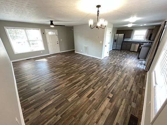 Welcome to this 4-bedroom, 2.5-bathroom home located in the charming town of Shelbyville, KY. This property boasts a range of modern amenities, including a privacy fence, a double driveway, and a 2-car garage with automatic door and shelving. The master bedroom features a walk-in closet, and the home is fitted with hardwood laminate flooring and tile floors. The kitchen comes equipped with stainless steel appliances, and the dining area is perfect for entertaining. The home also features a large rear deck, a covered front porch, and a storage shed. The interior is enhanced with ceiling fans, recessed and LED lighting, and window blinds. The laundry room comes with washer/dryer hookups, and the home is equipped with a dual zone HVAC system for your comfort. The exterior of the home is just as impressive, with a brick front exterior, exterior lighting, and a decorative glass door. The property also includes off-street parking, concrete sidewalks, and a rear sliding glass door. This home is a perfect blend of style, comfort, and convenience.