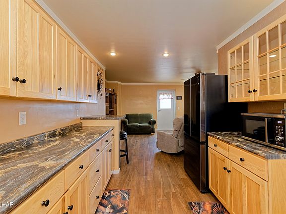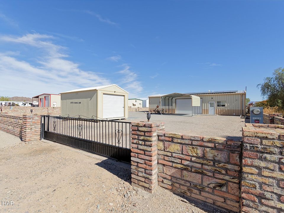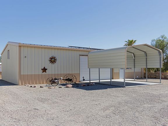 Check out this 55' X 30' impressively built steel building with a 500 sq ft tiny home inside! This property has full OWNED solar for 0-minimal electric bill. This not so ordinary tiny home does not feel tiny, is handicap friendly and made with nice materials. It has a roomy bathroom/utility room, studio bedroom/living and a kitchen area. Kitchen area is equipped with a combo air fry/microwave/oven appliance, induction cook plate, sink and a newer stainless fridge with Wi-fi. Mini splits take care of cool and heating with max efficiency. Fine flooring throughout, custom shower, cute vanities, this place is sharp! The home was designed to be easily navigated with wheelchair or walker. The metal building garage area has 16' wide X 9' high rollup door and a mini split as well. A 12' X 20' shed with rollup door is great for off road toy storage or workshop tinkering. Carport and plenty of room to park RV with hookups. This building is overbuilt and looks like it can withstand a tornado! Starlink equipment stays and account can be transferred at close. You have to see this property in person, call your Realtor today!