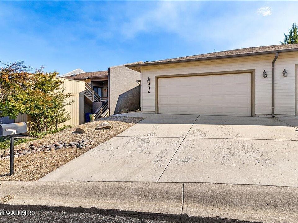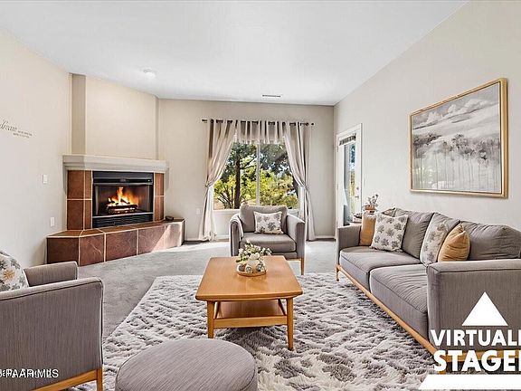 Nestled within the scenic community of Yavapai Hills, this charming and well-maintained townhouse offers the perfect balance of comfort, convenience, and low-maintenance living. The attractive front exterior welcomes you with its clean design, inviting curb appeal, and peaceful surroundings, an ideal setting for anyone seeking an easy-care lifestyle in a beautiful neighborhood.Inside, you'll find a bright and spacious great room filled with natural light, creating an open and welcoming atmosphere. A wood-burning fireplace with a tile-surround hearth anchors the space, providing a cozy focal point for relaxing or entertaining. The open layout flows seamlessly into the dining area and kitchen, where a window captures lovely views of the outdoors.The kitchen is thoughtfully designed with ample cabinetry, generous counter space, and crisp white appliances including a smooth-top electric range, dishwasher, and refrigerator. A convenient laundry closet sits just off the kitchen, complete with a full-size washer and dryer that conveys with the home.The primary suite serves as a tranquil retreat featuring a sliding glass door that opens directly to the back patio. The ensuite bathroom offers a glass-enclosed walk-in shower and a comfortable layout for everyday ease. The second bedroom and additional full bath provide great versatility for guests, a home office, or creative space.Step outside to a private back patio, accessible from both the living room's single French door, complete with a built-in doggie door, and the primary suite. This inviting outdoor area is ideal for quiet relaxation, entertaining, or simply enjoying Prescott's pleasant weather.Additional highlights include an attached 2.5-car garage with a convenient work area, attractive tile and plush carpet flooring throughout, ceiling fans for added comfort, efficient electric heating and cooling, and a newer water heater installed in July 2020. Residents of Yavapai Hills enjoy wonderful community amenities such as a pool, tennis courts, clubhouse, and open spaces for hiking. Conveniently located between Prescott and Prescott Valley, this move-in-ready townhouse offers quick access to shopping, dining, and recreation, an ideal choice for a full-time residence, second home, or rental property. With low HOA fees and minimal exterior maintenance, this home is the perfect lock-and-leave retreat in one of Prescott's most desirable communities.