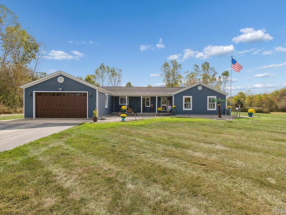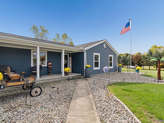 Welcome to 49765 Martz Rd! Your Private 15-Acre Retreat Awaits! Experience peace, privacy, and modern comfort in this beautifully updated 3-bedroom, 2.1-bath ranch home sitting on nearly 15 acres of partially wooded property. Whether you’re seeking space for your hobbies, a nature lover’s paradise, or a dream setup for outdoor adventures, this one-of-a-kind property delivers it all. Step inside to find luxury vinyl plank flooring throughout, and a bright open layout. The updated kitchen features new appliances (only 3 years old) and flows seamlessly into the dining and living areas. All bathrooms have been completely upgraded with stylish finishes and new fixtures. Enjoy the outdoors year-round from the massive 62’x20’ Trex Deck stretching across the back of the home, perfect for entertaining or relaxing. The 62’x60’ pole barn (built in 2018) is a true showstopper, featuring five garage doors including a 12-ft main entry, a 60’x17’ upper loft for storage, Two 120,000 BTU ceiling-mounted tube heaters, and 220 electric hookup ready for your RV or camper. A 35’x16’ RV carport sits conveniently alongside. The property itself offers a perfect blend of open and wooded land. Approximately 3 acres of manicured lawn up front and the remaining acreage filled with mature trees, cleared ATV and walking trails, and an abundance of wildlife ideal for nature lovers or hunting enthusiasts. Additional highlights include: New WeatherGard windows and doorwalls with a 50-year transferable warranty, Upgraded 20+ Inches of attic insulation, Keyless entry locks on all exterior doors and pole barn, Driveway seal coated annually. Just minutes from local conveniences and expressways, book your showing today!
