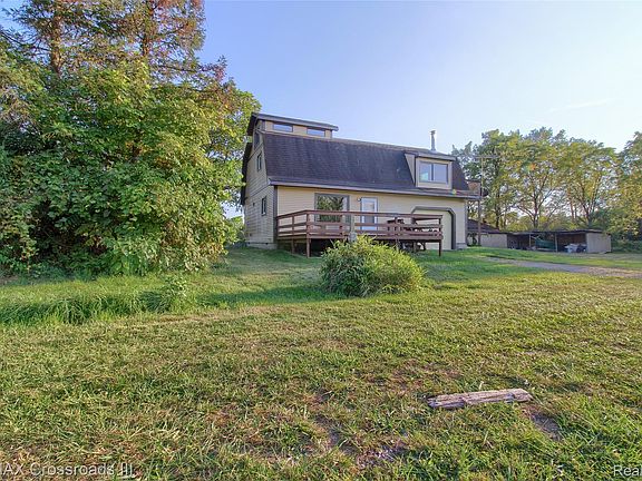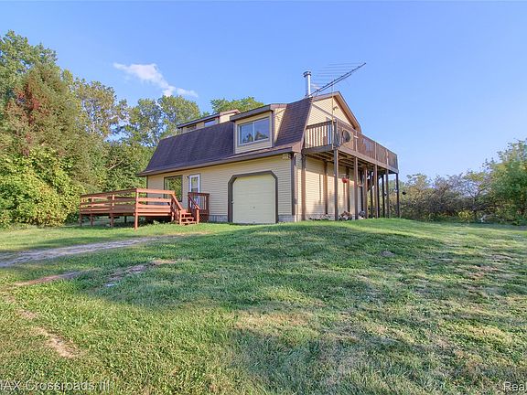 Peace and Quiet - This unusual home and property are a rare find. 10 natural acres, located approximately 1000 feet off the road. The home is a two bedroom home, with second bedroom being an elevated loft. Two kitchens, a spacious first floor living room and a large second floor great room with wood burning stove, cathedral ceiling and walk out balcony with stairs to ground. Attached heated garage allows access directly into home. Newer dual hot water heat and water heater for maximum efficiency. Whole house generator. A 30x50 pole barn features it's own electrical drop and plenty of space. The Property is located all the way to the end of the private drive. Note: Property is being sold as is. Pond is not on the property.