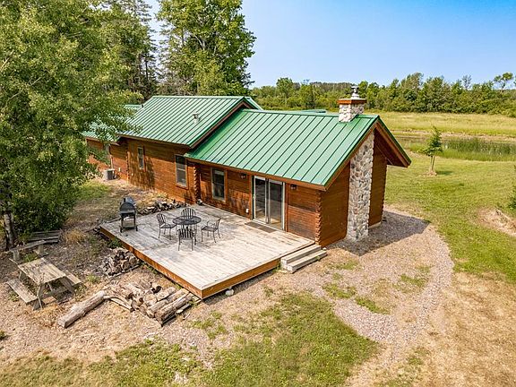 Own a piece of paradise. Cozy log home with commanding wood burning fireplace. Surround yourself with 40 acres of recreational land perfect for hunting, ATV riding or whatever your hobby may be. This home is being sold with all the furnishings and toys that you see in photos. It's move in ready, just pack your suitcase. The separate garage has heated floors and perfect for your toys and a great workshop. There is a RV hook up to septic as well. Close to several area trails and DNR land as well as nearby Moose Lake that hosts several year round events. Charming front covered porch and rear patio offer great views and perfect for hosting a BBQ. Property is being sold 'as is'.