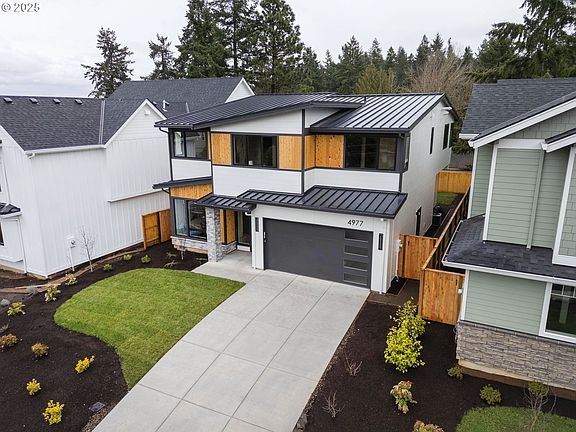 Step into sleek sophistication with this stunning new construction contemporary home nestled in one of West Linn’s most sought-after neighborhoods. Boasting 5 spacious bedrooms and 3.5 luxurious baths, this 3,527 sq ft masterpiece blends clean lines, thoughtful design, and high-end finishes to create an effortlessly modern lifestyle.At the heart of the home is a gourmet kitchen tailored for entertaining, complete with professional-grade appliances, an oversized island, custom cabinetry, and a built-in wine storage bar that adds both style and function.Flooded with natural light, the open-concept living space features stacking glass sliding doors that seamlessly connect the indoors to the outdoor patio—perfect for al fresco dining or relaxed evenings under the stars.Retreat to your spa-like primary suite, where you’ll find a soaking tub, oversized walk-in shower, dual vanities, and a generous custom closet designed to indulge.With contemporary architecture, thoughtful floor plan, and premium finishes throughout, this home offers modern elegance just minutes from top-rated schools, shops, and trails.Live stylishly. Live comfortably. Live West Linn.
