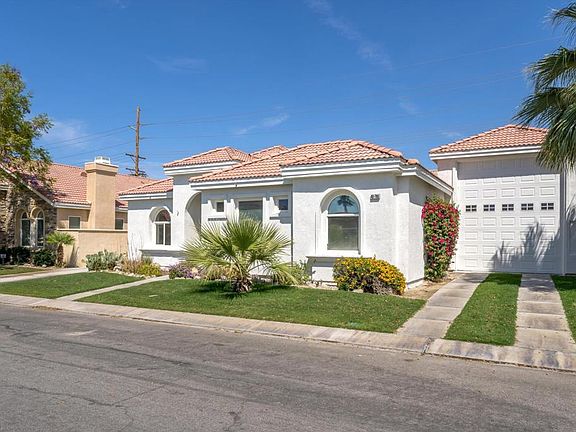 Enjoy wonderful country club amenities at Indian Palms Country Club including the onsite restaurant/bar, lifestyle center, swimming, gym, tennis courts, pickle ball, golf on 4 different courses, hotel for guests and guard gated main entrance.RV enthusiasts, car collectors and motorcyclists will all enjoy the oversized RV garage. The RV garage could also be a home gym or workshop. This garage will allow you to park multiple cars in tandem.The home's exterior and interior have just been repainted. The great room open floor plan with its gas fireplace connects the living and dining areas with the eat-in kitchen that has granite countertops with bar seating and new stainless Frigidaire appliances. A courtyard is located off the great room. New LG washer and dryer installed in the laundry room. Both the primary and the guest bedroom are ensuite with nice separation between them. The spacious primary bedroom has a large closet and the bathroom features shower, separate soaking tub and double vanity sinks. A powder room is located just off the great room by the guest room. The home's landscape maintenance is included in the HOA.Make this home your desert retreat or utilize as a Short-Term Rental. Located near Coachella Festival Ground and other popular nearby attractions. Buyer to verify all short-term rentals with the HOA and the City of Indio.