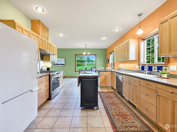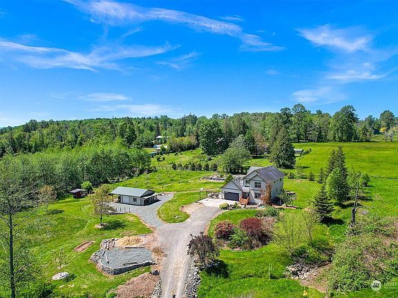 Enjoy the charm of country living with this farm-style home set on picturesque acreage with productive orchard, established gardens, functional shop, ready chicken coop, seasonal creek & salt water hot tub. Main level has welcoming space, with large patio leading out to hot tub and gardens. An inviting kitchen for processing garden delights (see the asparagus spears sprouting), additional space for sharing lavish meals or use for den. Upper level has 3 large & bright bedrooms, primary with en suite full bath, walk in closet and Mt Baker view. Shop is around 24x24' w/ 220, single garage door, & covered pad with lighting on the side. This well loved and established hobby farm is ready for its next owner to cherish.