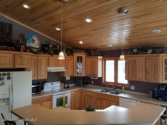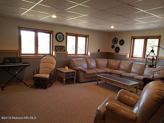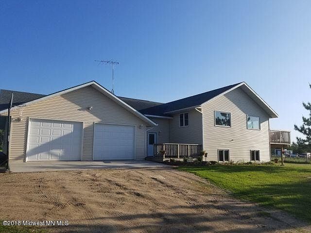 Peaceful living on 19 acres in the pines just 9 miles from Perham, 16 miles from Frazee, and 12 miles from New York Mills. This 5 bedroom 3 full bathroom split level home is sure to impress! Beautiful vaulted birch ceilings and 12 foot tall over sized entry. Spacious master suite bed and bath with a corner spa tub, vanity, double sinks and large walk in closet. Custom hickory cabinets wrapping around the center island with beautiful pendant lighting in the kitchen for great entertaining. Sun filled lower level with custom wood work throughout. New additional bedroom would make a beautiful office just off the wet bar/kitchenette area. Full Custom bath with 2 spacious bedrooms both with walk in closets also included in the lower level. Over sized two stall attached garage!
