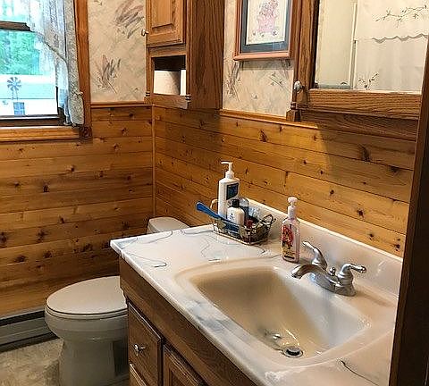 Spacious, well-kept home with huge rooms, 1544 SqFt up and 978 SqFt down(Total 2522). Formal Dining Room is bright and offers laminate flooring and is open to the applianced kitchen and dining area. Just off dining area is the large living room (20x20) overlooking the rear yard. The 3 bedrooms are on the first floor along with a full bath. Downstairs is another full bath, spacious family room with kerosene heater, 2-car garage and a large recreation,music room (20x20). This home has upgraded thermopanes and newer vinyl siding - each with lifetime transferable warranty! This home sits on 1.5 acres, borders a small pond at rear and has two storage sheds and another 1-car detach garage. You'll find lots to love in this spacious home on a peaceful and quiet lot.