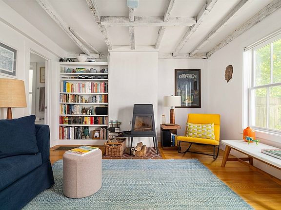 A Provincetown poet’s cottage in the heart of Riverside. Though modest in scale, this 1868 clapboard single-family lives larger than its footprint, with light, views, and thoughtful details. The front porch—with its swing, broad enough for books and conversation—sets a welcoming tone and opens to a living room with exposed beams, hardwood floors, and a fine Danish wood stove. A full eat-in kitchen with writing nook, wine fridge, and custom barnwood cabinetry anchors the home. Each of the two baths offers character: a full main-floor bath with walk-in shower, and upstairs, a luminous bath with glass-enclosed shower and clawfoot tub. Three open exposures—one overlooking the leafy pocket park across the street—offer long views and a sense of space and calm. A dry, full-height basement with laundry, workbench, and storage extends the living space. With two-car parking, plus Riverside’s tree-lined streets between Harvard, Central, and the Charles River, this cottage is a rare find.