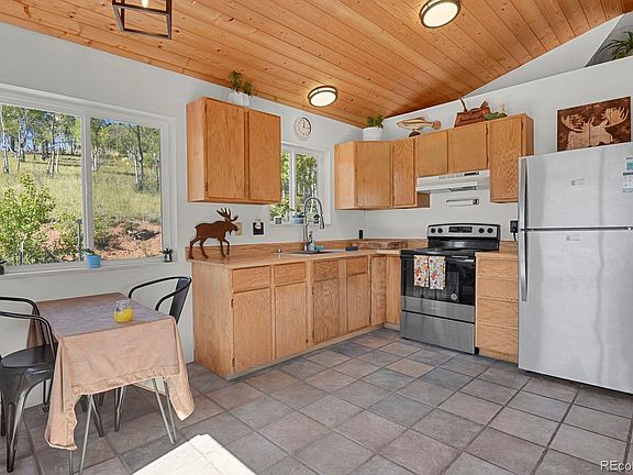 Enjoy peace and quiet in this fantastically located mountain property. On just over an acre this lot has sweeping views of the mountains and the aspen grove below. Picture windows in the living room allow you to enjoy the view from the comfort of your living room. This home has new appliances in the kitchen, has been freshly painted and is move in ready. The furniture is available to stay at the request of the new owners. The driveway has been freshly grated and the septic will be serviced prior to closing. Woodland Park is a quick 25 minutes and Cripple Creek is only 10.