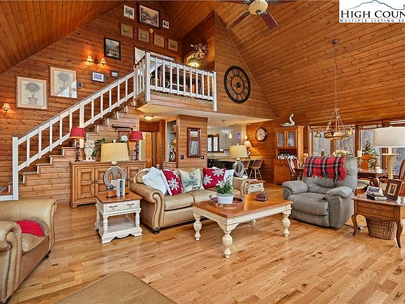 Welcome to 498 Hawk Ridge! A beautiful 3 bedroom, 3 Bath home furnished with very few exceptions nestled in a lovely gated mountain community. Perfect for a full-time residence, a rental investment property, or for the perfect get-a-way! The main level features a large open floor plan with vaulted tongue & groove ceilings, big windows to take in the sunlight, an impressive stone fireplace with gas logs, a spacious kitchen with stainless steel appliances, wine cooler & a snack bar, a large dining area, a bedroom & full bathroom and access from this level to the large wrap around deck. Upstairs is the large primary suite, a full bathroom & a nice loft space. The finished lower level has a bedroom area, family room, full bathroom, & a gas log stove and this level has access to the covered wrap around deck. There is a 1 car oversized garage with a laundry area & utility sink. Powder Horn Mountain is an incredible destination lake community offering kayaking, canoeing, miles of hiking trails, swimming pool, clubhouse, tennis & campgrounds, a chapel & much more! Seller plans on allowing showings Feb 11th