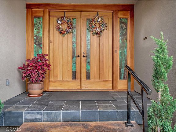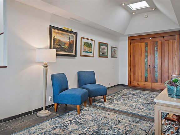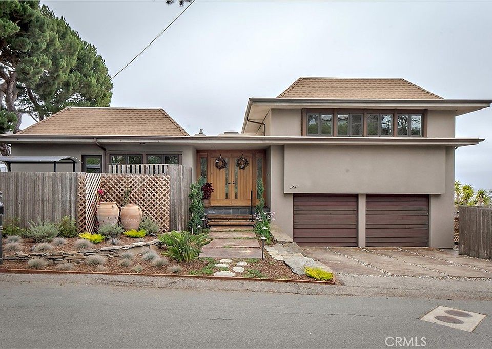 The dramatic and private setting of this property serves up sweeping coastal vistas that capture rocky coves, the rolling terrain of the Fiscalini Ranch Preserve and nearby coastal hills. The unique multi-level design features 3 impressive en suites each on a separate level, a desirable layout for vacation rental or primary living. The interior is accented by detailed coffered ceilings, designer lighting, multiple skylights, premium flooring and exotic finish materials. An impressive walkway leads past lush landscaping and copper clad garage doors to a striking entry of fine wood inset. A bright foyer overlooks the spacious dining area and ranch views beyond. Near the foyer, a large primary suite includes a privacy garden and patio and an impressive bath with abundant glass block, double vanities in stone counters, separate tub and shower plus a grand closet area that includes a rotating clothing rack. Down 2 steps from the foyer, a large family room with fireplace offers more coastal views plus exterior stairs to a lower deck and hot tub. The kitchen and living level are two steps up from the dining room and provide its own ocean views. The kitchen boasts an array of professional quality appliances, copious storage and a unique island with counters of stone. The top level contains a big guest suite with sitting and office areas, plus additional ocean views. The lower level guest suite with private entry has 3/4 bath and access to the outside deck and hot-tub. Call your REALTOR® today!