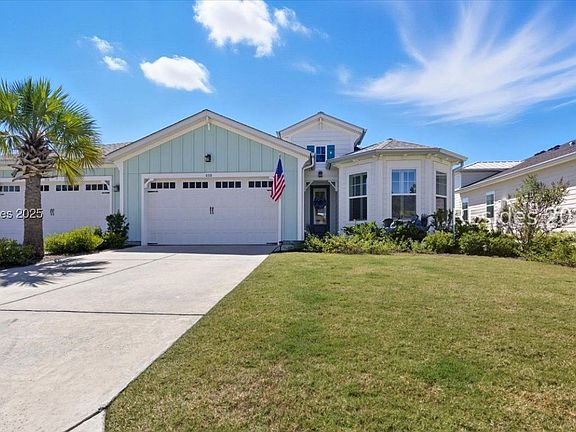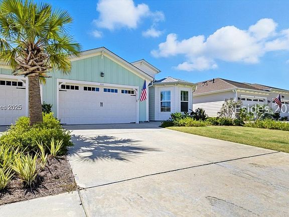 Welcome to lagoon view living in Latitude Margaritaville! This sought-after Nevis villa is ideally located near distance to the Town Center and resort-style amenities. Offering 3 bedrooms, a den, and 2 baths, the open floor plan flows to a screened birdcage with tiled flooring, perfect for morning coffee. Thoughtful upgrades include hardwood floors, Cambria quartz countertops, 42" cabinets with soft-close drawers, crown molding, under-cabinet lighting, and 8 doors with 5.5 baseboards. Enjoy high-end stainless appliances, wood shelving, beams in the primary suite, and plantation shutters with custom window treatments. Additional features include a gas cooktop, pull-down attic stairs, epoxy-finished garage flooring, whole house water filtration system, and whole house surge protector. This home captures the best of Margaritaville style with function and flair.