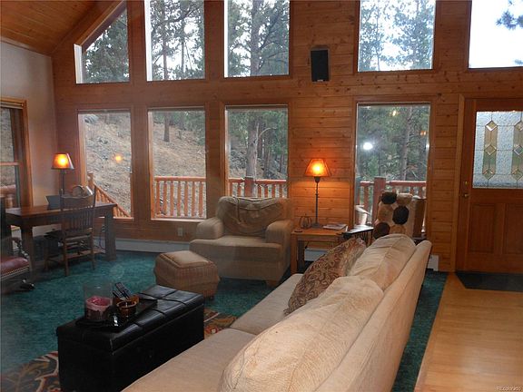 SELLER WILL GIVE BUYER $7,500 AT CLOSING FOR ANY UPGRADES THEY MIGHT WANT. Seller loves Mountain Living at it's best on this quality design, Main Floor Master Bedroom, Jack and Jill Bath separates the upper bedrooms, Great Room offers terrific sun and brings the outdoors in through sparkling windows and deck access to fresh air. Kitchen provides comfort and warm ambience to eating space. Carpet and wood flooring accent the attractive finish detail throughout. Two car tuck under garage is 25x18 with 2 doors (9x8)and(8x8) there is extra space that is used as a work shop it is (17x14) or it can be a place to park a 3rd car or toy it . Bonus is a huge out building(30x40) with 220 ELC. that can serve as a 6 car garage or collection showcase. work shop or home business . The 2+acre site offers a seasonal stream , mature pine and aspen trees, outcrops, and excellent commutable distance to Denver via Hwy 285.The free standing wood stove in the living room is a QUADRA-FIRE 1YR. OLD