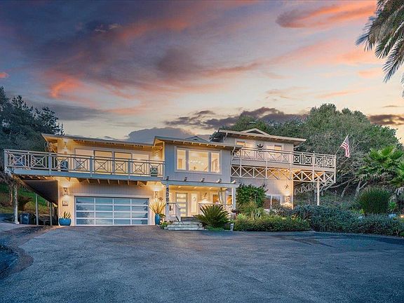 Located in a private location this gorgeous ocean & Monterey Bay view home has been tastefully remodeled. The chef's kitchen boasts custom wood cabinets, featuring waterfall & slab quartz counter tops, ceramic tiled subway backsplash, S/S appliances, gas range w/ 4 burners & center griddle, wine rack, glass doors, stone tiled feature wall. Porcelain tiled floors. Open & spacious kitchen/family room. Recessed lighting, built-in speakers, gas fireplace w/custom mantel, crown moulding. Huge primary suite w/ newly remodeled bath, double sinks, jetted tub, subway tiled shower, high ceiling, double sinks, skylight, & private deck. 2 bedrooms & full marble stone bath on 1st level. 4th room den/office/TV room. Mud room, inside laundry built-in office, glazed glass/wood doors. Wood floors throughout. Generator, water softener, on demand water heater, drip system. Large entertainers deck & outdoor kitchen. Fabulous landscaping & complete privacy. Views are amazing. Minutes to Aptos Village!