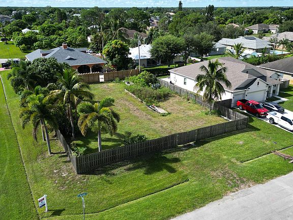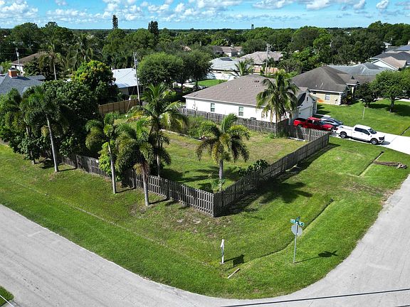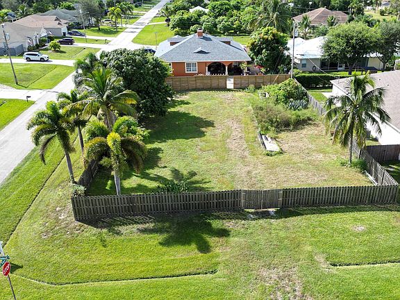 Beautiful Oversized, Fenced in, Corner Homesite in the popular SW section of Port St Lucie. Measuring approx. 95'x125'. Culvert pipe for Driveway has been installed for easy access onto lot. Only minutes to FL's Turnpike, Publix Shopping, Schools, Restaurants and the all New Florida Coast Medical Center. This Healthcare Facility is a state-of-the-art healthcare center, set to open in September 2025! Fruit Trees including Mango Trees that are already producing juicy mangos! There are not many vacant homesites left in this highly sought after area of Port St Lucie! Call today!