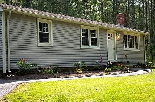 Entirely renovated "new" ranch in on large (3/4 acre) lot in fabulous location surrounded by CONSERVATION LAND in prestigious Duxbury. Beautiful, sun-filled home in a peaceful, natural setting at the forest's edge. Enjoy picture perfect views of the serene, wooded landscape from large, brand new windows as you relax in this adorable move-in condition home decorated in a light and bright color palette: granite kitchen with all new stainless appliances and custom cabinetry. Fireplaced living room. Brand new bath with custom granite vanity. Gleaming hardwood floors throughout. Lovely new composite deck. Lower level has an enormous family room, plus additional finished space for a possible home office, & laundry room. Brand new 4 BR septic system. All new windows & doors. State-of-the Art brand new high efficiency heating system, with tankless, on-demand hot water heater. Excellent for commuters: 2 minutes to Rte. 3