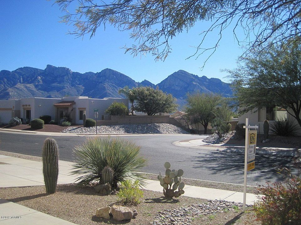 For more information on this property, contact the Listing Agent, Brittany Baker at (520) 331-5335 or BrittanyB@LongRealty.com. Beautiful great room floor plan in Monterra Hills, Oro Valley AZ. Enter thru a custom entry privacy door into a wonderful great rm w/high ceilings, huge wall for any size TV. Den off the entry w/double French doors that could be a 4th bdrm w/a closet added. Lrg open kitchen, stainless steel appl., including a double door refrigerator, lrg island & designer lighting. Beautiful large chandelier adds a very high end feel. Ceramic tile thru-out the grt rm & traffic areas, w/carpet in the bdrms. Split bdrm plan has two bdrms & full bathrm separate from huge master bdrm. Master bath has a garden tub & walk-in shwr,dual sinks & new light fixtures. Garage is ext'ed 4ft longer for extra storage space. Rear yard beautifully landscaped oasis,w/custom rock waterfall, brick pavers,custom shade canopy.