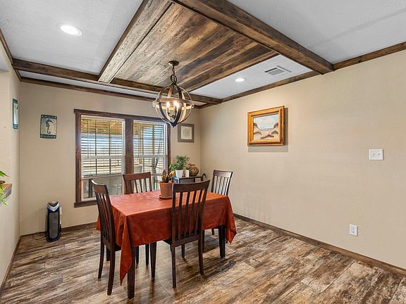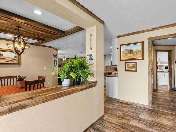 - Breakfast Bar, Built-in Features, Ceiling Fan(s), Beamed Ceilings, Corain Counters, Crown Molding, Double Vanity, Kitchen Island, Open Floorplan, Primary Bedroom on Main, Walk-In Closet(s)
