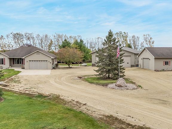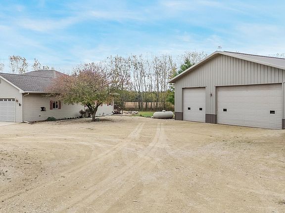 Peaceful country living with space to spread out. Incredibly well maintained 4 bedroom, 3 bath ranch nestled on a spacious 3.5 acre lot. You'll love the inviting sunroom that fills the home with natural light and offers stunning views of the property. Step inside the open kitchen area and see the two way gas fireplace creating a cozy warm space. The lower level boasts a finished room great for entertaining plus a bedroom and full bath. Outside there's room for everything, a massive 40x80 outbuilding providing endless possibilities for storage, hobbies, or a business, plus a 28x32 heated building with a cement floor for a workshop. At night relax around the fire pit area or enjoy time on the newly renovated deck and take in the wildlife. Please note the finished lower floor is painted