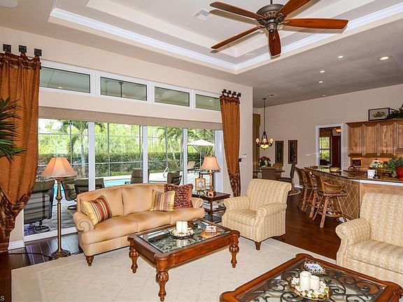 H.10278 MAJOR PRICE REDUCTION. ABSOLUTELY EXQUISITE! RARELY AVAILABLE ARAGON MODEL ESTATE HOME. This stunning home is beautifully furnished and decorated with over $228,000 in upgrades and extras. A Must See! Double etched glass entry doors with privacy shades, hardwood floors throughout, custom window treatments, hurricane impact windows and doors, upgraded light fixtures, upgraded wood cabinetry in kitchen and baths, premium stainless kitchen appliances, granite countertops, center island, walk-in pantry, tiled breakfast bar, custom landscape lighting front and back, outdoor kitchen with Wolf BBQ grill and refrigerator, extended lanai expansion/re-screen, 40' x 8' retractable awning with remote, closets by Design, Bosch pedestal washer/dryer, LED lighting throughout, built-in safe, Bose surround sound, tons of cabinet storage in garage, and much more. Excellent condition. Shows like a model. Naples Lakes is a bundled golf community featuring Arnold Palmer Signature Golf Course, newly renovated clubhouse, state-of-the-art fitness center, cabana grill, community pool/spa, 5 har tru tennis courts, great tennis program. Convenient to downtown Naples, beaches, shopping, I-75.