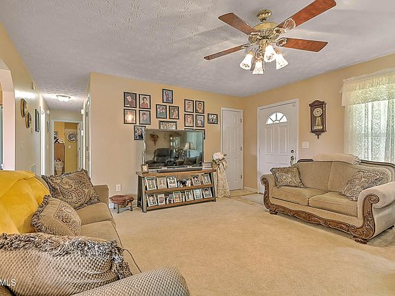 Neat and clean as can be! Move in ready 3 bedroom, 2 bath home in a beautiful setting. You will love the front and rear covered porches! Large level lot with pretty countryside views. Full basement with a finished room, 2 car garage and lots of storage. The primary suite has two closets and its own bath. Main floor laundry. The roof was replaced in 2018 and the heat pump in 2016. Storage building stays. There is a 50 amp electric hookup for a camper.