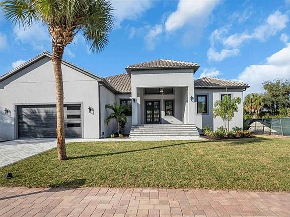 One or more photo(s) has been virtually staged. Stunning BRAND-NEW Custom-Built Home in the gated Blackburn Estates on the Bay! Welcome to 4980 Top Sail Drive, a meticulously designed custom-built residence in the luxurious gated waterfront community of Blackburn Estates on the Bay. This modern coastal home showcases exceptional craftsmanship, elegant architectural detail, thoughtfully curated high-end finishes throughout and truly one-of-a-kind designer finishes throughout. Featuring three ensuites—two guest suites and a luxurious primary—plus a fourth bedroom and full bath at the front of the home, along with a true half bath off the lanai for easy pool access. The gourmet kitchen offers Bosch built-in convection oven and microwave, Bosch cooktop with range hood, custom floor to ceiling cabinetry, slate custom stone island with Kraus Kore stainless-steel sink, Bosch built-in dishwasher, and KitchenAid hidden cabinet refrigerator. A stylish butler’s pantry includes stone counters, Kraus stainless-steel sink, cabinetry and Frigidaire Chez Vous side-by-side refrigerator. Enjoy the expansive lanai with built-in outdoor kitchen, grill, and includes a Whynter 24” dual-zone wine and beverage cooler—perfect for entertaining, located under the covered lighted area and ceiling fan, directly beside the serene custom lap pool with attached spa overlooking the lake. Premium details throughout this home include Moen bath sinks, quartz and high-end stone countertops, Hansgrohe showers with floor to ceiling tile walls and framed glass doors, ALUPROF impact sliders, DDRUTEX impact windows, epoxy garage floor, LG Smart washer/dryer, Yale smart lock on custom front door, and York HVAC system. This is an extremely rare opportunity to own such a high-end custom home in the most desirable of locations, surrounded by multi-million-dollar custom homes along the Intracoastal Waterway, complete with private kayak launch, fishing dock, and kayak/canoe storage. A modern coastal masterpiece, this brand-new home defines Florida's waterfront luxury living. Call today for your private showing before it’s gone!