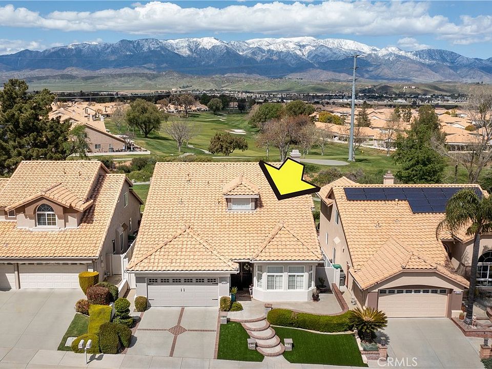 BACK ON THE MARKET. Freshly painted interior w/new 5 1/2" baseboards and new refrigerator! Location, Location! The views are so nice that they've been on the cover of our Sun Lakes Lifestyles magazine 2 or 3 times. One of the beautiful sunrises looking down our fairway is currently on the cover of the Sun Lakes phone book. GREAT GOLF COURSE AND MOUNTAIN VIEWS! This sought after 2 story Doral model is very popular because it has 3 bd,3ba & the 2nd bedroom is downstairs with a full bath across the hall. The upstairs has a lg. loft, bedroom and full bathroom. This beautiful home is 2,327sqft and sits elevated on the tee box of Hole#5 on the Main Golf Course at SLCC, a 55+, guard gated community. As soon as you enter the home you'll notice the high, vaulted ceilings with its many different angles and features along with the many windows for natural light that creates an elegant look and feel to the living areas. SO MANY UPGRADES! $Plantation shutters throughout. $Custom lighting and fans in most rooms.(Also a WHOLE HOUSE FAN) $Plush quality carpet in Living rm., upstairs bedroom and loft. $Kitchen was remodeled to open it up to the Family rm. and incl. an extra lg. granite counter and brkfst. bar. $Gas fireplace was converted from wood-burning to beautiful fire glass. $Custom back Security door has an interchangeable screen and glass panel. $Bonus storage rm. was added upstairs, it's enclosed, drywalled, has plank flooring and recessed lighting. The lg. Main bedroom has 2 wall length closets(one is a walk-in) The beautiful Main bath has a granite counter w/2 sinks, a custom tiled walk-in shower and lg. soaking tub. The downstairs Guest bedroom can dbl. as an office and has a beautifully decorated bathroom across the hall(The walk-in shower was made with a slab of granite) HAVING AN EXTRA DOWNSTAIRS BEDROOM AND BATH IS A BIG PLUS! The indoor laundry rm. has a deep sink and the large LG washer/dryer are incl. The garage has full length custom cabinets on each side and also a niche for your golf cart. $Exterior stucco and trim were recently painted. $Artificial turf in the front for water conservation. $A/C replaced about 5yrs.ago. $Full length "Alumawood" patio cover w/3 levels, a fan and recessed lighting. The neighboring walls are stucco and vinyl for a nice look and low maintenance. Includes a 20ft flagpole to fly your flag proudly! THE NORTH FACING BACK PATIO ALLOWS SHADE FOR MOST OF THE DAY! You'll enjoy this home for many years to come!