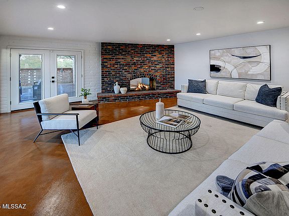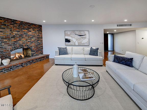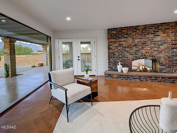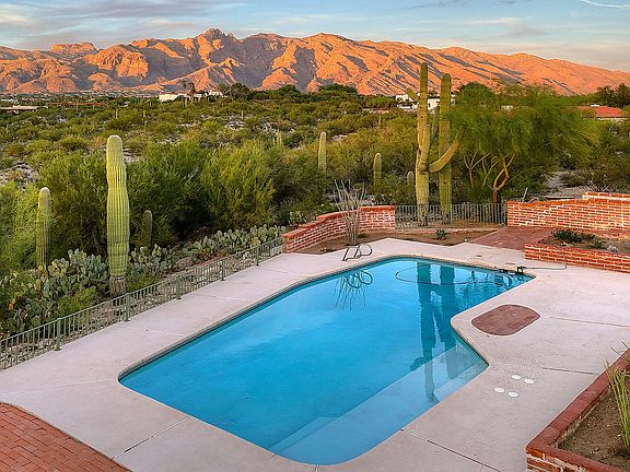 Extensively remodeled classic Tucson burnt adobe territorial on 1.29 ac with uninterrupted, extraordinary mountain views, perfectly sited at the end of a quiet Foothills cul-de-sac. All-new eat-in kitchen boasts abundant custom cabinets, new SS appliances, quartz counters & large island w/bar seating plus breakfast nook. All remodeled luxe baths, new fresh paint & refinished gleaming concrete floors throughout. Walls of glass frame dramatic Catalina Mtns, while a stunning brick 2-way FP anchors the living room & kitchen spaces. Deep shaded porch offers ideal outdoor living overlooking the large pool. Spectacular location just minutes to St. Philip's Plaza, University of Arizona, La Encantada, fine dining & Dist. 16 schools. Timeless Tucson charm meets modern luxury!