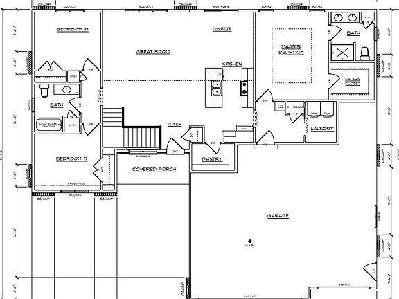 Center islandWalk-in closetLarge kitchenWalk-in pantryCathedral ceilingsSplit bedroom layoutOpen concept layout