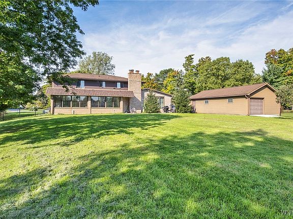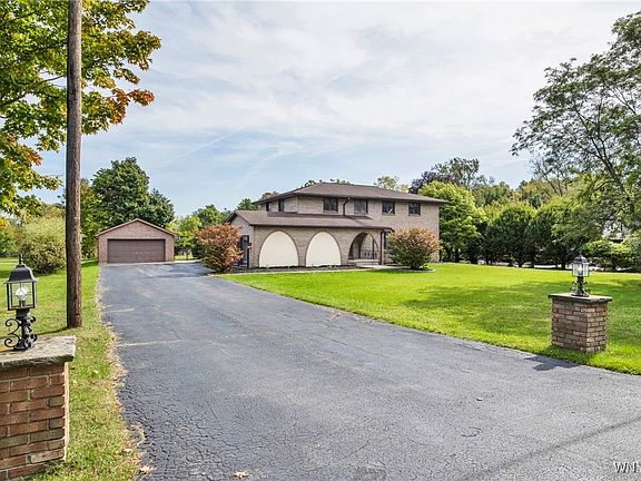 Welcome to 4981 Winding Lane! A stunning, all brick, almost 4,000 square foot home located on a peaceful street in the desirable Clarence area. A two story foyer greets you and leads to the living areas and spacious kitchen. A formal dining room, first floor laundry, heated sunroom, bonus room, office and half bath complete the first floor. Upstairs are four generous sized bedrooms including a primary suite and hardwood floors throughout. Enjoy views of the regulation sized tennis court and beautiful landscaping ('24) on one-plus acre lot. Large garage has room for three plus cars and there is still plenty more parking in the driveway. Multi-zone heating system plus air conditioning, large, dry basement with a fireplace. Updates include: Mini split in dining room/living room 2023, air handler for entire second floor 2023, concrete pad and ramp for garage 2023. This home and yard provide plenty of space for exceptional indoor and outdoor living! Offers will be reviewed as they are received and the seller reserves the right to set an offer deadline. Open house Sunday 10/13 11-1.