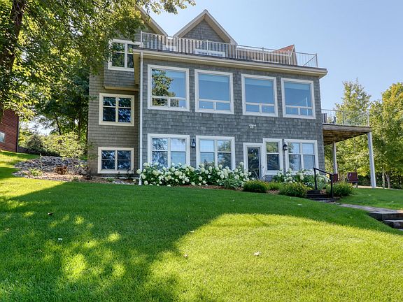 PELICAN LAKE This beautiful home is situated on one of the nicest shorelines on Big Pelican with 100 ft of hard, sugar, sand bottom. The 6,000+ sq. ft home has 5BR + a bonus rooms for an extra office or workout room. 7 bathrooms, 2 gas fireplaces, 4 car garage, & a boathouse with a great new sitting deck. Grand lakeside windows! Breathtaking sunsets! Large, open kitchen with pantry! The downstairs is also perfect for entertaining & walks out to the lakeside. The sellers have done numerous upgrades including adding several bathrooms, extensive landscaping with stone steps, new trees, a new boathouse deck, gas patio fireplace, an outdoor rock grilling area & more! In floor heat! Steffes thermal energy storage system! Off Peak Dual Heat! 2 new RO systems! Central Vac, 2 laundries’ main floor & lower! ICF foundation! Survey! Compliant septic! See Seller Improvement List!