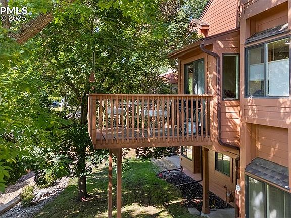 ***See the Amazing Video at the Virtual Tour Link on the listing*** Welcome to a stunning and spacious townhome nestled in the desirable Pinon Sun community. This unit is beautifully updated blending comfort, character, and functionality in a serene park-like setting. Step inside to find all new luxury vinyl plank flooring in the living room, dining room, and kitchen. Freshly cleaned carpets throughout the rest of the home. The living room and dining room impresses with soaring two-story ceilings with wood beams, a cozy brick fireplace with a dramatic two-story hearth and wood mantle. The kitchen features stainless steel appliances, granite counters, a pop-out window, pass-through window to the sunroom, and all new cabinet hardware. The sunroom is an inviting space, enhanced by brick flooring and direct walk-out access to the deck, perfect for morning coffee or evening relaxation. The home features two generous suites! On the main level, the large bedroom includes a bay window, two closets, and an attached bath with pocket doors. Upstairs, the huge loft-style primary suite serves as a private retreat, with a private bathroom, wood beam ceilings, window seats, and two closets. The finished walk-out basement adds valuable living space with a large family room, bedroom looking out onto the covered patio, and a bathroom. Additional features include: Extended 2-car garage, Window blinds throughout are bottom-up/top-down style, and Walk-out access points to outdoor serene forest-like spaces. Community amenities include: Pool, Spa, Basketball Court, BBQ Area, and Open Green Spaces. Don’t miss the chance to own this character-rich, move-in-ready home in one of The Springs’ most desirable communities.