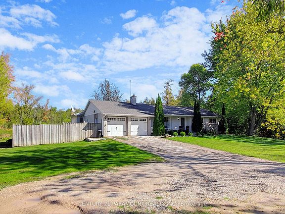 Modern 1800 sq ft (approx) Ranch Style Bungalow for sale in rural Erin. Home sits on a beautiful picturesque, landscaped and private treed lot. Open concept floor plan with many windows that bring in a lot of natural light and which makes the hand-scraped & hardwood floors throughout the home gleam. The modern kitchen has Quartz countertops with a large breakfast bar with pendant lights overtop, lots of storage, undercabinet lighting, gorgeous subway style backsplash, new upgraded stainless steel appliances and a large window that overlooks the backyard and garden. The kitchen faucet has reverse osmosis filter, and blue light filter for water into the home. The home is freshly Painted. The Kitchen overlooks the dining roomcombined with family room that showcases a custom TV/entertainment wall and has a walk-out to the extended deck in the backyard. French Double doors open up to the Living/Media Room thatboasts a rustic propane fireplace, floor to ceiling windows and a reading niche with custom circular window. Smooth ceilings and potlights throughout home. Newly renovated Powder room iscombined with laundry. Newly renovated main bathroom boasts Double shower, soaker tub, and walkout to backyard deck. Fenced and treed backyard boasts an above ground pool and extendeddeck with gazeebo in garden, perfect for entertaining. Google smart thermostat, Fibre highspeed Internet (Standard Broadband), carbon monoxide and smoke detectors. Partial asphalt paved driveway and gravel circular driveway. Keypad entry on front door into home. Garage has agarage door opener, keypad entry and shelving, with entry into home. Storage container/Shed onproperty.Well-maintained home is mere minutes away from Georgetown, all amenities and major highways. Roads/streets to home are plowed and maintained.
