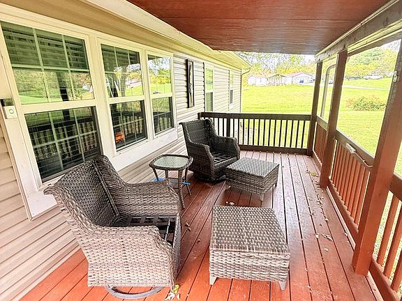 : If you've been searching for a 3 bedroom home with private settings and beautiful views, then search no more! This move in ready home has had many recent updates within the past 10 years, including the roof, furnace and AC unit. The past 2 years a new large covered front porch was added and all new seamless gutters. Inside features include hardwood floors, spacious eat-in kitchen, new appliances, three nice bedrooms, a large bath and a full basement that could easily be finished for additional living space. Enjoy the peace and tranquility of the country while taking in the view from the back covered carport or new beautiful covered front porch. This home is immaculate!! Pack your bags and move in!