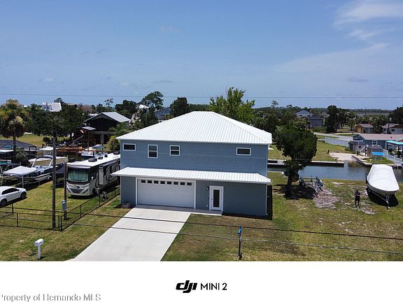 NO CDD OR HOA FEES!!! DISCOVER THIS 2023 TWO BEDROOM HOME IN HERNANDO BEACH. House is only 2 years old, owner lives in it part time so it's move in ready. Open access to the Gulf and only minutes by boat. It was built as a split floor plan. The house has sliding glass doors in the living room. French doors in the Master bedroom, both lead out to the screen-in porch that overlooks the canal. Porch is ideal for entertaining year-round. Master bath suite has an oversized walk-in shower. Vinyl flooring throughout the house for easy care. Stainless steel appliances stay with the house. Double pane windows. Metal roof with secondary water barrier. Stairs are located inside of the house for safety and protection. Lower level has almost 1200 square feet of garage and storage space. Garage door ex-large, French doors are in the garage lead out to the downstairs porch. This house is on a street with very little traffic. Golf cart friendly community. Neighborhood allow to do short-term rentals. Gulf access with no bridges. Just minutes from restaurants, shopping, the boat ramp, hospital and Weeki Wachee Springs. Home warranty included with purchase.