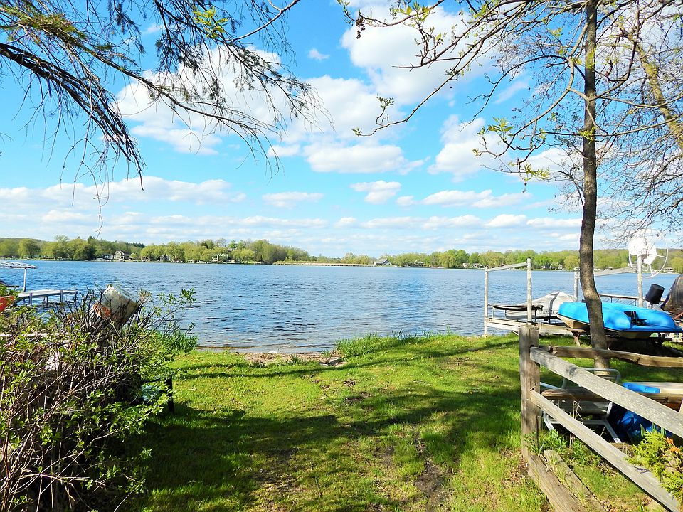 Ready for the lake living life style in a spacious 3 bedroom with a 2.5 car garage? Airy dining and living room is warmed by the natural fireplace. Across the street 10 feet of Lake Frontage is ready to host your private pier & boats. Serene backyard is adjacent to 81 feet of river frontage with great fishing & canoeing. Walking distance to parks & restaurants. New roof & many mechanicals in last 5 years: furnace, central air & more. Kitchen appliances and home warranty included!