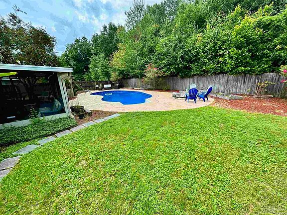 SELLER OFFERING $5000 IN CONCESSIONS TOWARDS CLOSING COSTS!! Beautiful Pool Home with custom cool-crete concrete patio!! Welcome to this well-maintained 4-bedroom, 2-bathroom home offering a perfect blend of comfort, style, and thoughtful updates. Inside, you’ll find durable vinyl and tile flooring throughout most of the home, a cozy wood-burning fireplace, and a spacious bonus room ideal for a home office, playroom, or flex space. The kitchen and breakfast area features charming shiplap accents, a breakfast bar, newer appliances, and gas availability, with an adjacent formal dining area for gatherings. Major upgrades include a new roof (March 2020), new AC unit (October 2020), and gutters installed around the entire home, providing peace of mind and added value. Step outside to your private backyard retreat, complete with a kidney-shaped saltwater pool (liner and pump replaced), a screened porch, an outdoor fire pit, and even a blueberry bush for seasonal enjoyment. There is even a Rain Bird sprinkler system that covers the front, side and back yard to help keep the yard looking great! The property also includes a 2-car garage and the benefit of no HOA restrictions. This home is move-in ready and offers a versatile layout for a variety of lifestyles. Don’t miss your opportunity to enjoy indoor comfort and outdoor living—all in one place.