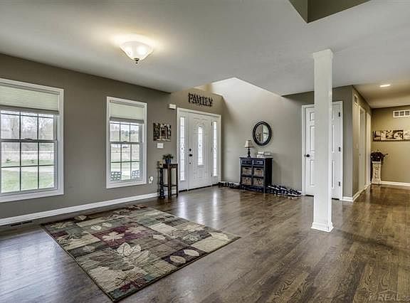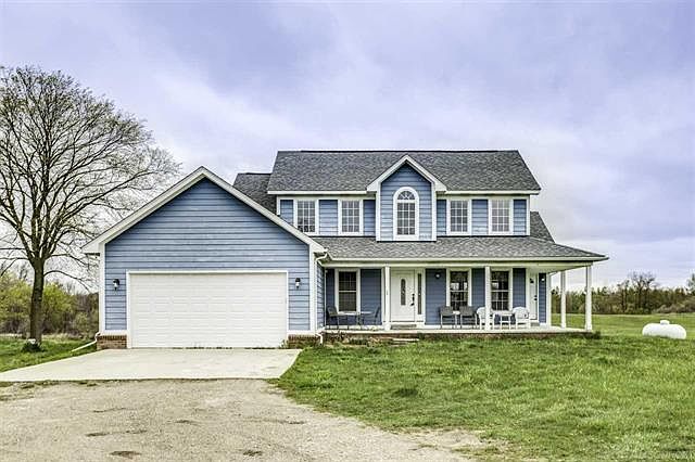 Beautiful Colonial style home with many upgrades. Home features wrap around porch for entertaining with family and friends. Hardwood floors throughout most of the home. House features custom cabinets in the large eat- in kitchen along with Stainless Steel appliances. The Great Room has recessed lighting, a vaulted ceiling and gas fireplace. Gorgeous windows all throughout to look out over your spacious 2.5 acres. First floor library/den with custom bookshelves. Walk down the hall to your master bedroom with a walk in closet, master bath, vanity with double sink, separate tiled shower, and a jetted tub to relax in after a long day. Upstairs features 3 additional bedrooms, all with walk in closets and another full bathroom. This is a great opportunity you do not want to miss!