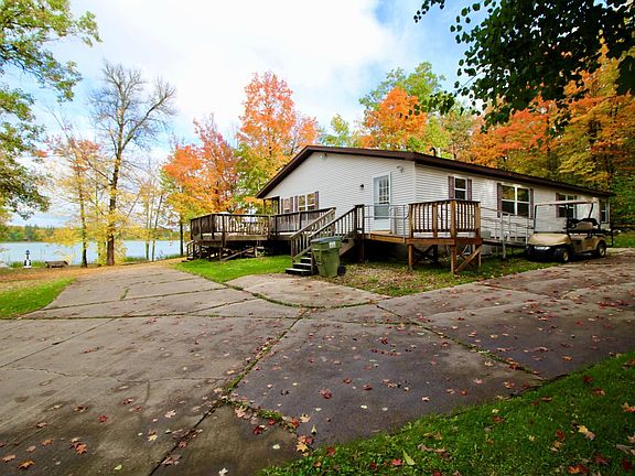 Recreational paradise on beautiful Esquagamah Lake awaits you! Enjoy 184' of lake front along with a 3-bedroom 2 bath manufactured home in excellent condition. Home has a nice kitchen and dining area, a lake-side living room, a large primary suite with a bathroom that features a jetted tub, separate shower and dual sinks. Living room has NW views and a gas fireplace. Outside features a large 48x40 garage, nicely wooded lot, storage shed, and a nice circle driveway. Per DNR survey, the lake is an excellent fishing lake featuring walleyes up to 25-inches, pike up to 33-inches, crappie, bluegill, largemouth bass and a host of other species. This well maintained and loved home is the perfect place to start you own lake memories. Appliance and dock stay.