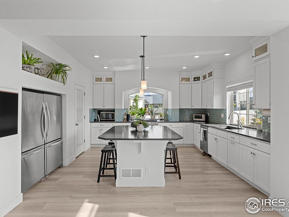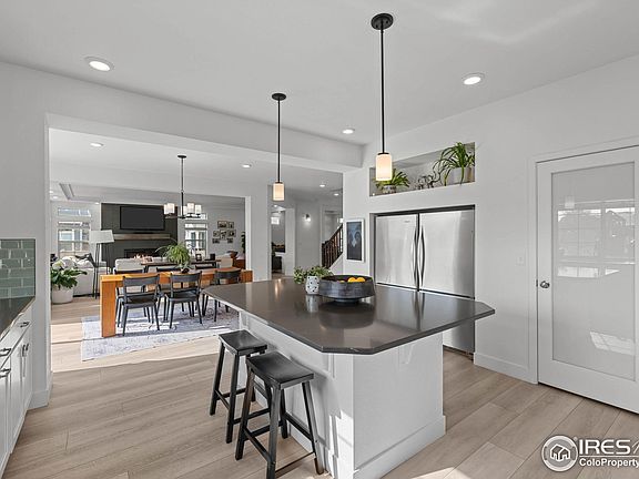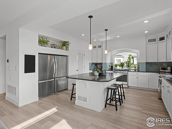 Experience modern luxury in the exclusive, gated Green Valley Ranch golf community-one of Denver's most sought-after destinations for upscale living and resort-style amenities. Situated on a private cul-de-sac, this 2022 Oakwood Homes property combines elevated privacy, contemporary elegance, and every convenience for an exceptional lifestyle. This residence features nearly 5,000 finished square feet with 5 spacious bedrooms, 5 bathrooms, and a 3-car heated garage with epoxy flooring and built-in overhead storage. Enjoy mountain views from the front balcony and seamless indoor-outdoor living with direct access to a professionally landscaped backyard oasis-$70,000 in enhancements including 17 trees, raised garden beds, a stone patio, and a stunning built-in pergola. Inside, the open-concept design offers luxury vinyl plank flooring, a striking living area with gas fireplace, and a chef's kitchen equipped with black granite countertops, a five-burner gas stove, stainless steel appliances, double refrigerators and freezers, walk-in pantry, and oversized island. The dining room flows naturally to the backyard for effortless entertaining, and a dedicated office space enhances functionality. Upstairs, the primary suite provides plush carpeting, a custom ceiling fan, a large walk-in closet, and a spa-inspired five-piece bath-jetted tub, oversized walk-in shower, and dual granite vanities. Additional upper-level features include multiple full bathrooms, a versatile loft, and a laundry room with utility sink and cabinetry. The finished basement boasts an extra-wide staircase, a spacious recreation area, a fifth bedroom with private bath, and an abundance of storage. Key upgrades include dual HVAC systems, whole-home water softener, video doorbell security, double-pane windows, and a huge crawl space for additional storage. Residents enjoy Green Valley Ranch amenities: clubhouse, pool, championship golf course, parks, trails, and easy access to shopping, and DIA.