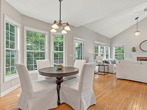 This lovely Hampsted Village home boasts 5 bedrooms and an open floor plan. Hardwood floors on both levels! Main floor opens to large living room, dining room and vaulted great room flooded with natural light. Bright kitchen with granite countertops and stainless steel appliances and cozy eat in space. Half bathroom and option of 5th bedroom on main floor. Upstairs offers a large primary bedroom and ensuite with new shower, 3 more spacious bedrooms, full bath and bonus room. Finished lower level with half bathroom, large bar and rec area. Newer mechanicals and freshly painted. Relax out back on large deck and yard that backs to lush woods. Close to Market St, schools and New Albany leisure paths.