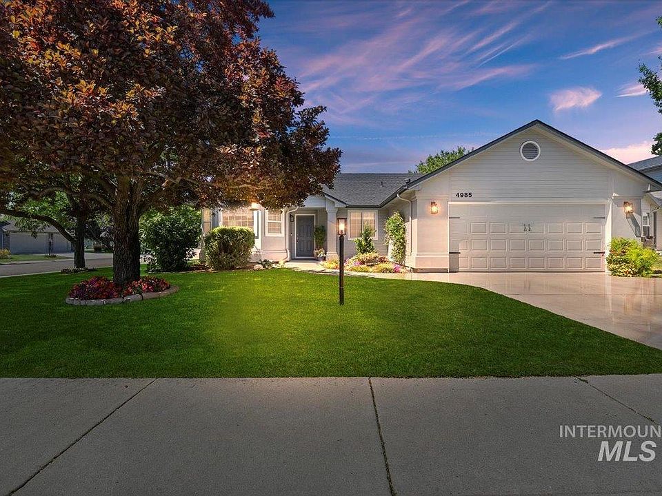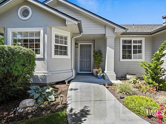 Don't miss this beautiful single-level charmer nestled in desirable Austin Creek! Prime West Boise location situated across from a path accessing Charles F. McDevitt Sports Complex and McMillan Skatepark. Minutes to The Village with shopping, dining and more. Light-filled open floor plan with vaulted ceiling, cozy gas fireplace and LVP flooring throughout. The bright & functional kitchen boasts a pantry for ample storage, breakfast bar and plenty of counter space. Relax in the spacious master suite featuring a ceiling fan for comfort and an en suite bathroom with dual vanities and walk-in shower. New updates galore including: LVP flooring, fresh interior and exterior paint, ss appliances, light fixtures (inside and out), kitchen countertops/backsplash/sink, blinds, carpet (2018), HVAC (2020), and newer roof (2018). Enjoy the private, fully-fenced backyard with full auto sprinklers. Corner lot-NO NEIGHBORS on one side! Move-in ready - Refrigerator INCLUDED!!
