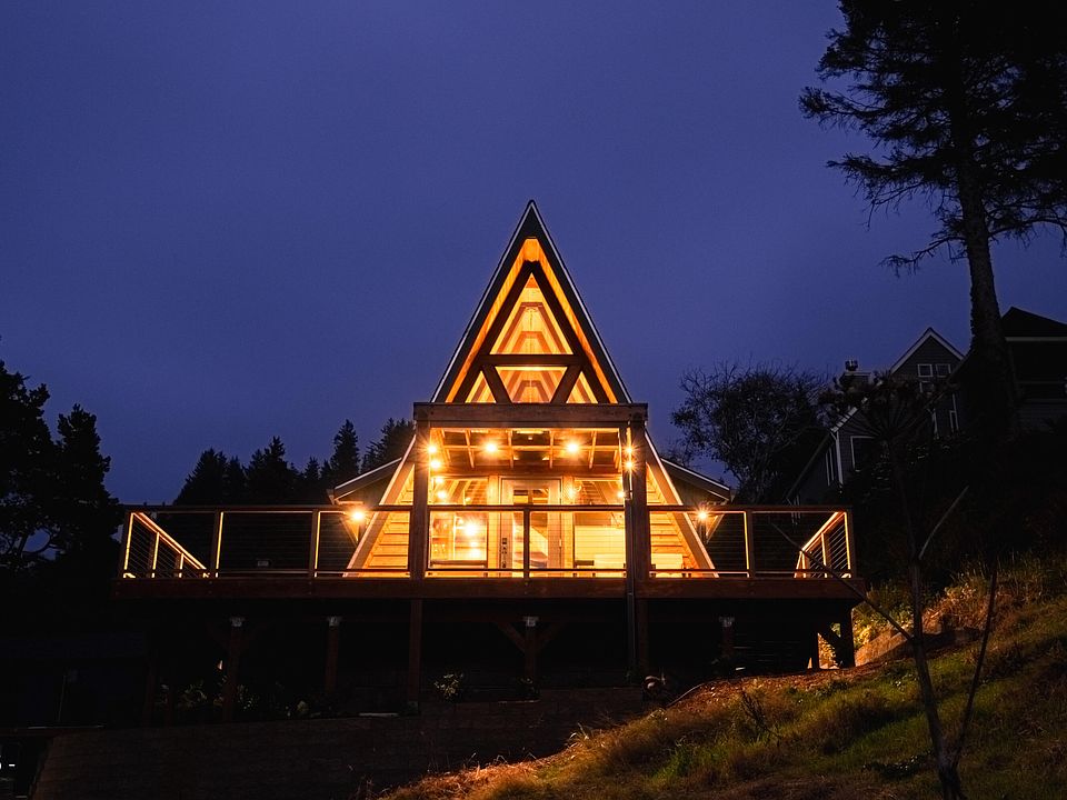 For those drawn to coastal serenity and forested escapes, this beautifully restored iconic A-frame is a masterwork of craftsmanship and design. Nestled where the forest meets the sea, this serene retreat merges modern updates with timeless natural beauty. Thoughtfully curated with locally milled, hand-selected woods, the home celebrates Oregon's rich natural resources and artisanal heritage. With 2 bedrooms and 2 bathrooms, the design seamlessly brings the outdoors in. Just steps from private beach access, your living space becomes the sunset as it slips beyond the renowned Ghost Forest. Soaring, floor-to-ceiling windows frame awe-inspiring views of Neskowin's South Beach and dramatic basalt cliffs, a front-row seat to the Pacific's daily performance.
