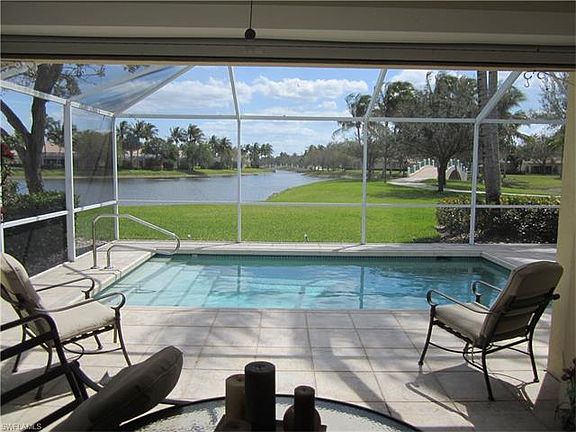 From the private setting of a screened tiled lanai and solar heated pool this home in Island Walk can proudly boast a long lake view with 4 bridges and a meticulously landscaped common area.The inside of the home offers upgrades such as wall units in the great room and garage, ceramic tile through out the living area and carpet in the bedrooms, plantation shutters on the windows. The owners have also upgraded the insulation in the attic to help reduce electric and heating bills. Storm shutters protect all windows openings and the lanai is protected by electric roll down shutters. The privacy of this home is exceptional!