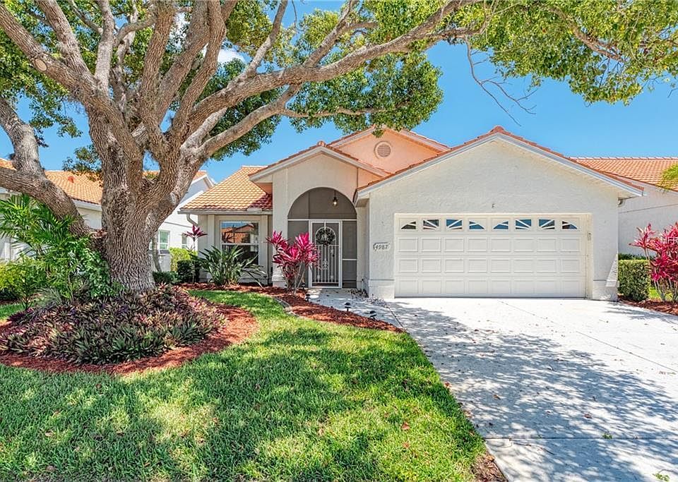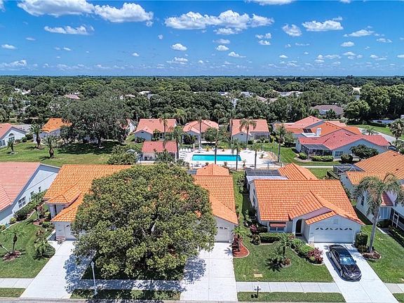 This is the Athens Model, a popular design by Arthur Rutenberg when the franchise developed this section of Southwood in the late 80's and early 90's. A free standing, concrete block, tile roof home with just under 1,600 Sf Ft under air, it has cathedral-vaulted ceilings with plant shelves and the stylish design features found in his homes. This home lives and feels much larger, wide open and sunshine bright, big rooms and closets, an incredible Master Bedroom Suite plus Formal Dining area, Eat-in Kitchen, Guest Bedroom and Bath and a Den/Study. The Great Room and Kitchen Sliders open to the Lanai and Extended Screen Caged 20x19 Patio with an Inground Spa and just steps to the Community Heated Pool. Kitchen and Baths have been elegantly upgraded, porcelain tile everywhere but in the Bedrooms, add an oversized 2 Car Garage. Not much needed to be done by a new owner; ductwork replaced-2014, a new tile roof in 2016, 15 SEER Trane Heat Pump System-June 2018. Southwood is an established Deed Resticted Community, all lawncare, landscaping, irrigation and basic cable included in $610 Quarterly HOA fee, no CDD. Location is ideal, near everything desired; shopping, beaches, Venice "Island" and the fast developing exciting new amenities of the West Villages. Be sure to see the Virtual Tour, a picture is worth a 1,000 words.