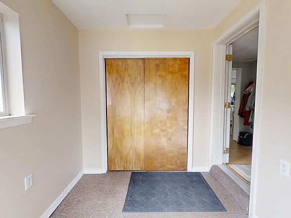Perfectly situated just minutes from downtown Hancock, this affordable Franklin Township home offers practical living with recent updates and a convenient location. Entering through the front door, you'll step into a carpeted foyer with bifold closet doors providing immediate storage. A small step up brings you into the spacious living room where natural light streams through double windows with wooden blinds, creating a welcoming atmosphere for relaxation or entertaining. Moving through the home, wood-look flooring guides you from the living room through a transitional hallway into the heart of the home. The main floor bathroom has been completely remodeled with new grey patterned tile flooring throughout. This updated space showcases modern finishes including a white shaker-style vanity with contemporary black fixtures and a clean white tub/shower combination with built-in shelving. Conveniently located in the same space, the laundry area features side-by-side machines with overhead storage, making household tasks efficient and accessible. The eat-in kitchen flows seamlessly from the bathroom area and offers white cabinetry with ample storage along with a double-basin stainless steel sink beneath a sunny window. The designated dining area accommodates a cozy table and chairs, perfect for morning coffee or casual meals. Natural light fills this space through multiple windows, including one in the door leading to exterior access. Carpeted stairs with a sturdy handrail lead to the upper level where two bedrooms await, both featuring new carpet that extends through the hallway. The first bedroom showcases convenient open closet storage with integrated shelving and drawers. The second bedroom offers unique character with white-painted faux brick paneling accent, new carpeting, and dual closet spaces providing flexible storage options. Both rooms benefit from natural light and flush-mount ceiling fixtures. Being just a short drive to Hancock Public Schools and local amenities, this property presents an excellent opportunity for first-time buyers or those seeking affordable housing in a township setting with quality improvements already complete. Check out the 3-D tour!