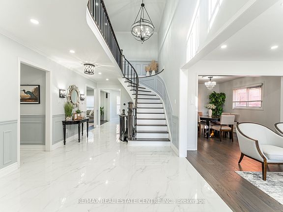 Welcome to this beautifully maintained 4+1 bedroom, 4-bathroom detached home, nestled in one of East Woodbridge's most sought-after and family-friendly neighborhoods! This residence perfectly combines style, functionality, and timeless charm, making it ideal for large families or those looking to upsize without compromise. Proudly situated on a premium lot, this home offers exceptional curb appeal and parking for up to six vehicles (including a double-car garage) perfect for multi-vehicle households or entertaining guests. Step inside to an inviting, sun-filled interior boasting approximately 4,100 sq.ft of total living space loaded with upgrades and fine finishes. The main floor features 9 ceilings, elegant wainscoting, crown Moulding, and hardwood floors throughout, creating a warm and refined ambiance. The modern chefs kitchen showcases stainless steel appliances, sleek cabinetry, quartz counters, and a spacious breakfast area, flowing seamlessly into the dining and family rooms. The cozy living room with a fireplace offers the perfect setting for relaxation and gatherings. Upstairs, discover generously sized bedrooms, including a primary suite with a walk-in closet and a luxurious ensuite bathroom. The fully finished basement adds incredible versatility with a large recreation area, a fifth bedroom, and a full bathroom perfect for in-laws, guests, or a growing family. Step outside to your private backyard oasis, ideal for summer entertaining, barbecues, or simply unwinding in peace. Surrounded by lush parks, trails, and quiet tree-lined streets, this home is just minutes from top-rated schools, shopping malls, restaurants, and major highways, offering both convenience and tranquility. Recent upgrades: Furnace (2022), Heat Pump (2023), Attic Cellulose Insulation (2023), Electrical Panel (2023).A true turnkey family home that blends comfort, character, and location this is the one you've been waiting for.