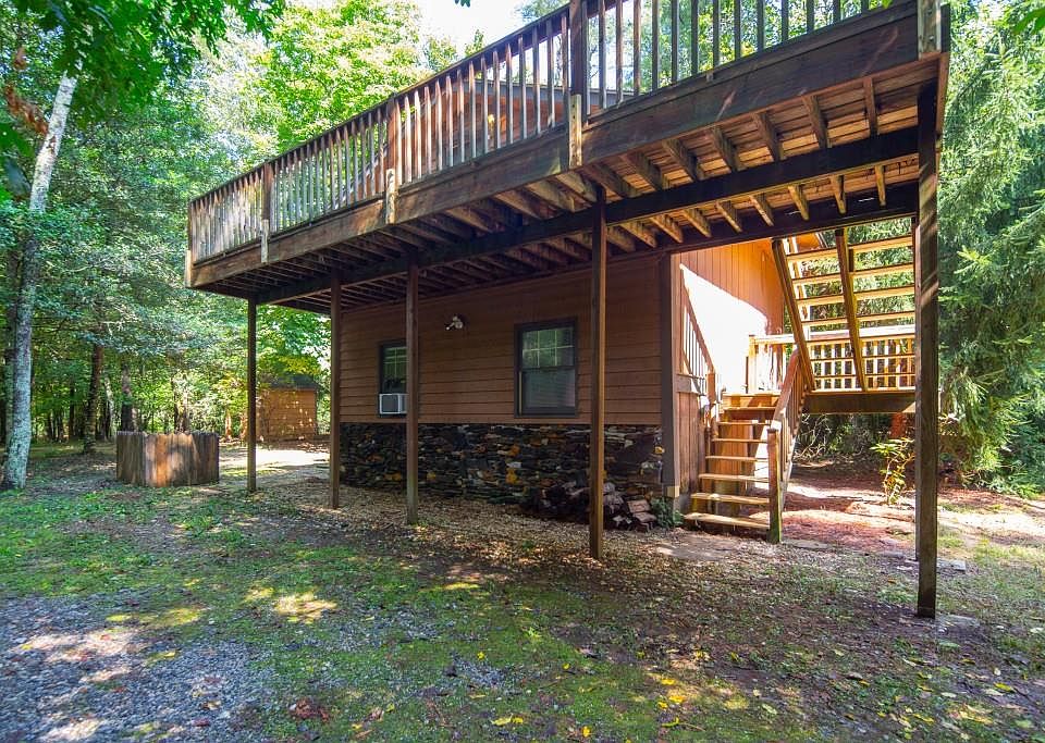 Living the dream! This one bedroom cabin sits quietly beside the Etowah River! All the privacy you could want and less than 15 minutes to downtown Dahlonega! Very open layout! Bedroom and bath on the first floor and the kitchen & living room upstairs feature a wood stove. Level walk from the front door all the way to the water! 3+ acres with a dock over the river! Here's your chance to own a mountain retreat!